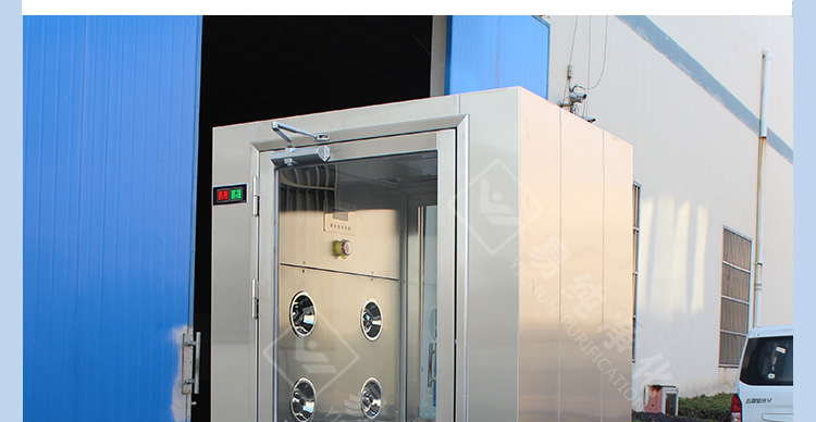 3、采用風機高低檔轉(zhuǎn)速要求對內(nèi)部空氣進行自動循環(huán)自凈。當有人員進入風淋內(nèi)部時,風淋風機啟動,風速一般達到25-28米/秒左右,當人員出風淋后,風淋風機低速運轉(zhuǎn),在設(shè)定時間到達后即停止。這樣的反復自凈,將內(nèi)部空氣不斷循環(huán)更新,以保證室內(nèi)空氣的新鮮及潔凈度。